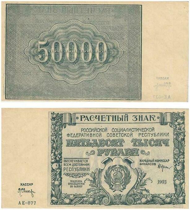 Q2457 Banknote Russia USSR 50000 Roubles 1921 AU - Offer