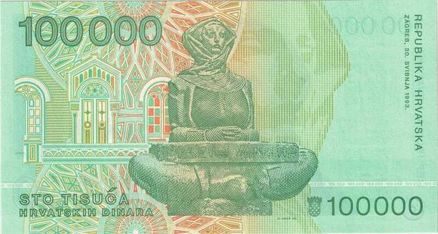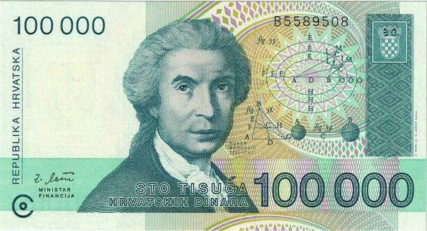 Q2487 Banknote Croatia 100000 Dinara Ruđer Bošković 1993 UNC -- Make Offer