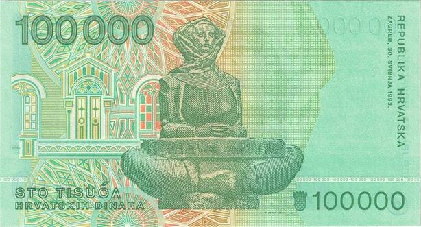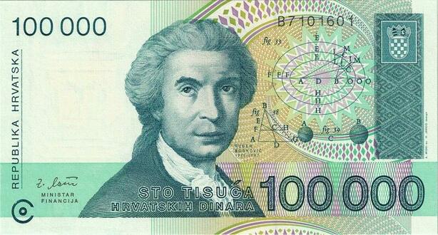 Q2488 Banknote Croatia 100000 Dinara Ruđer Bošković 1993 UNC -- Make Offer