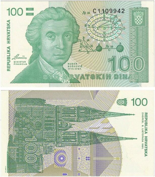 Q2494 Banknote Croatia 100 Dinara Ruđer Bošković 1991 UNC -- Make Offer