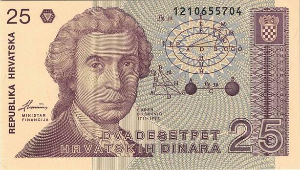 Q2502 Banknote Croatia 25 Dinara Ruđer Bošković 1991 UNC -- Make Offer