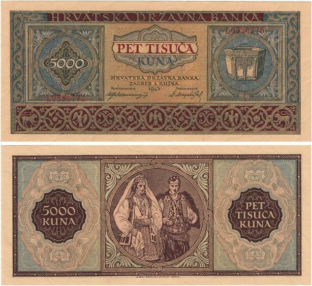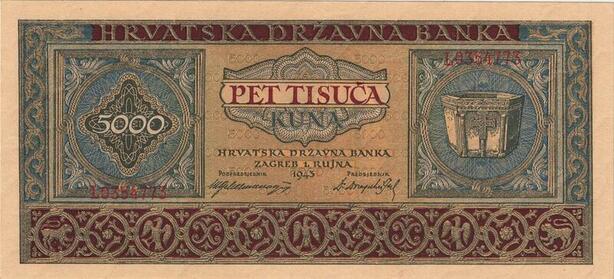 Q2508 Banknote Croatia 5000 Kuna 1943 UNC -- Make Offer