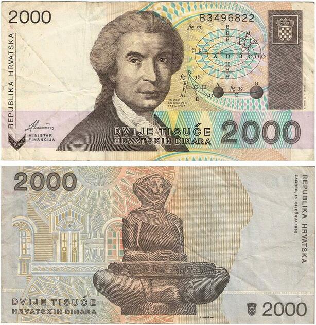 Q2512 Banknote Croatia 2000 Dinara Ruđer Bošković 1992 -- Make Offer