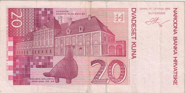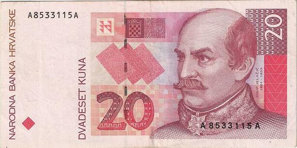 Q2515 Banknote Croatia 20 Kuna Josip Jelacic 1993 AU -- Make Offer
