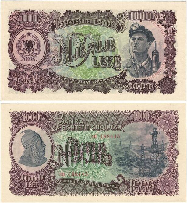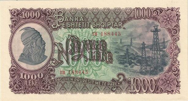 Q2529 Albania 1000 Leke Gjergj Kastrioti Skënderbeu Skanderberg 1957 UNC