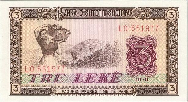 Q2536 Banknote Albania 3 Lekë 1976 UNC -- Make Offer