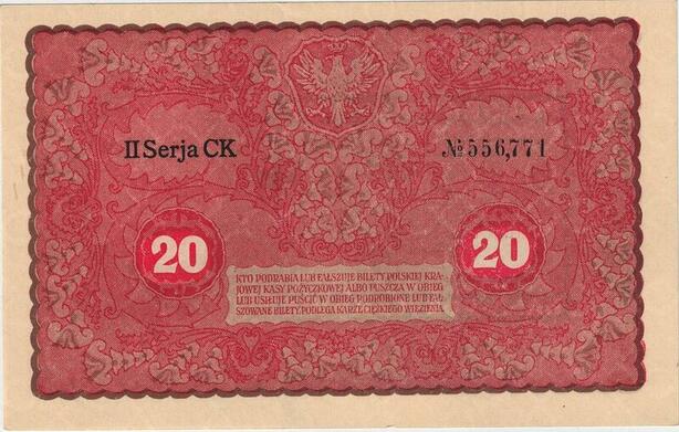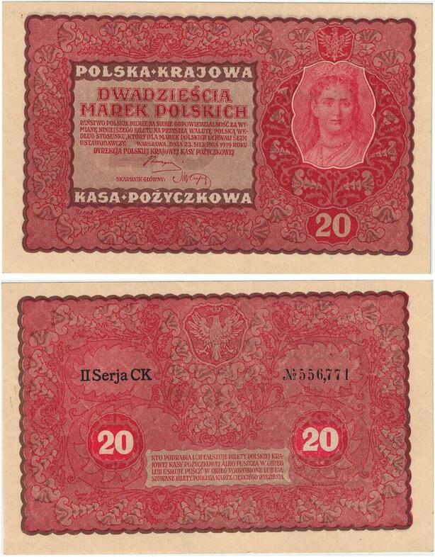 Q2543 Banknote Poland 20 Marek Polska Krajowa Kasa 1919 UNC -- Make Offer