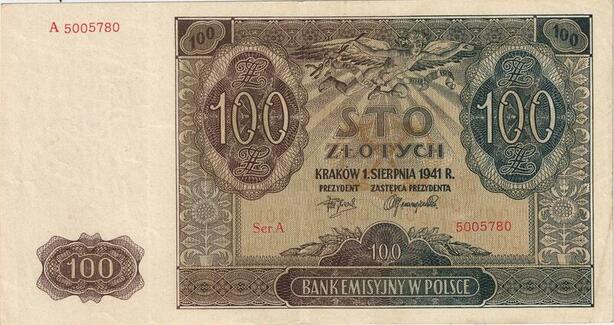 Q2565 Banknote Poland 100 Zlotych 1941 -- Make Offer