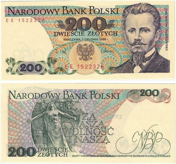 Q2585 Banknote Poland 200 Zlotych Dabrowski 1988 UNC -- Make Offer