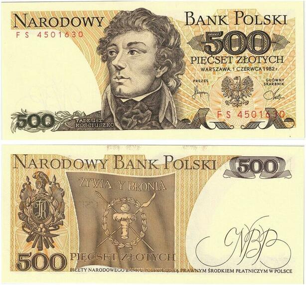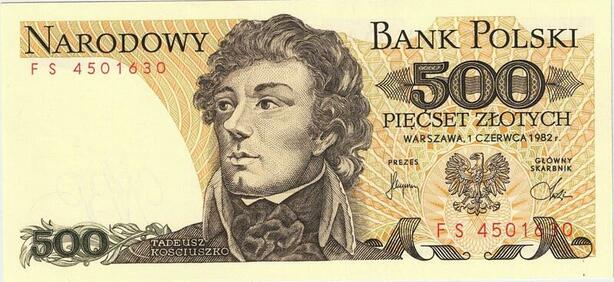 Q2586 Banknote Poland 500 Zlotych Tadeusz Kosciuszko 1982 UNC -- Make Offer