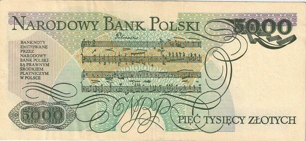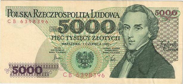 Q2588 Banknote Poland 5000 Zlotych Chopin 1982 UNC -- Make Offer