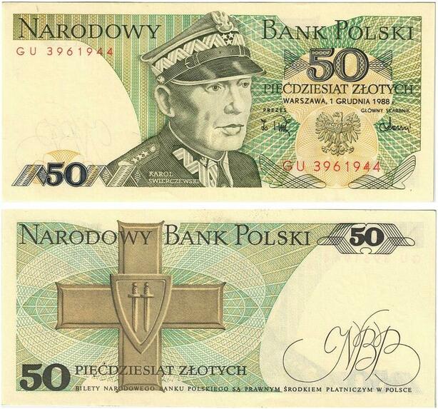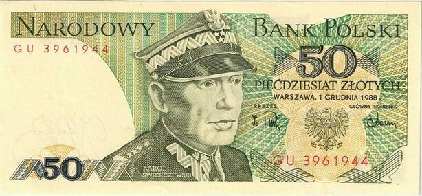 Q2601 Banknote Poland 50 Zlotych Karol Świerczewski 1988 UNC -- Make Offer