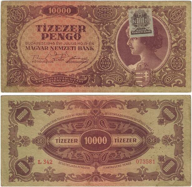 Q2622 Banknote Hungary 10000 Pengő 1945 Stamp Magyar Nemzeti Bank AU - Offer