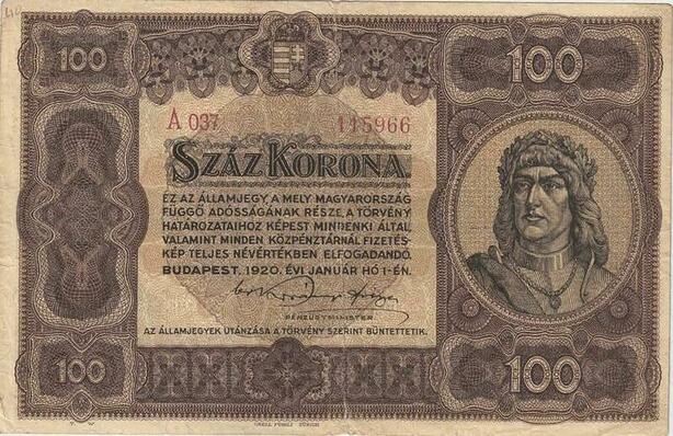 Q2646 Banknote Hungary 100 Korona King Mátyás 1920 -- Make Offer