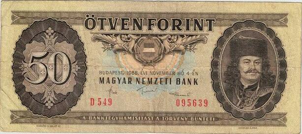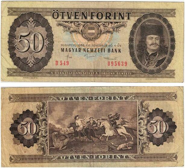 Q2674 Banknote Hungary 50 Forint Ferencz Rákóczi II 1986 -- Make Offer