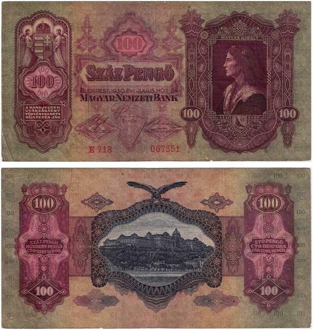 Q2681 Banknote Hungary 100 Pengő King Mátyás 1930 -- Make Offer