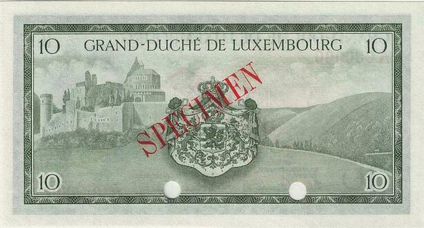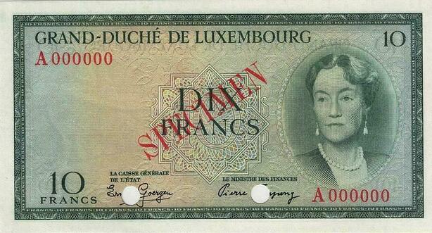 Q3418 Luxembourg Specimen Essai 10 Francs Grand Duchesse Charlotte 1954 FDC