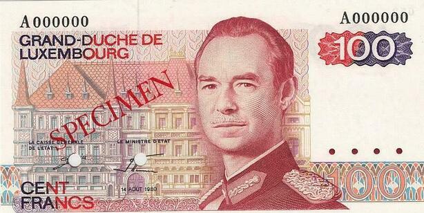 Q3435 Rare Luxembourg Speciment Essai 100 Francs Grand-Duke Jean 1980 UNC