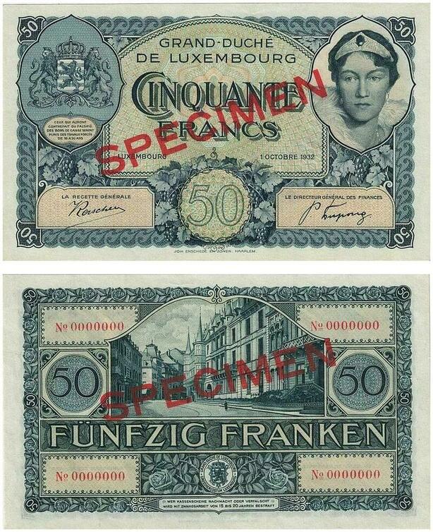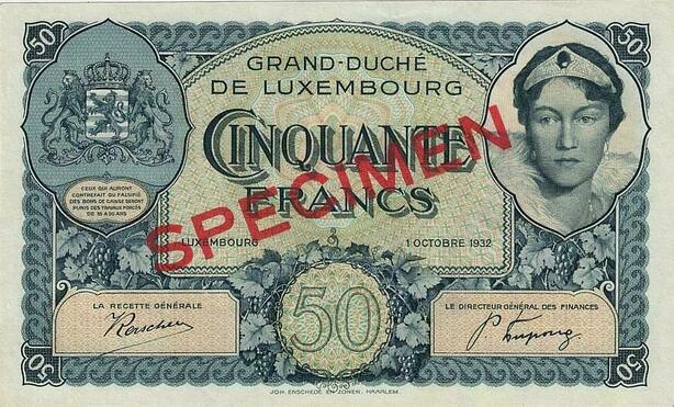 Q3440 Rare Luxembourg Specimen 50 Francs Grand Duchess Charlotte 1932 UNC