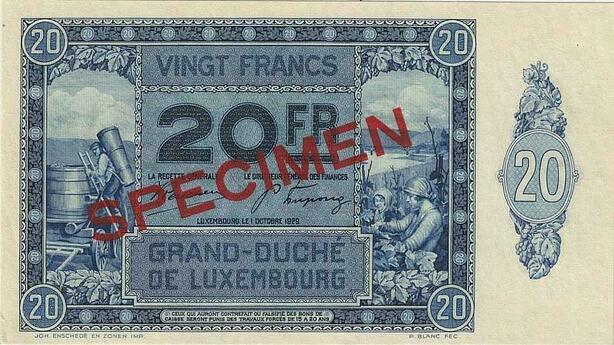 Q3441 Banknote Rare Luxembourg Specimen Essai 20 Francs 1929 UNC >Make Offer