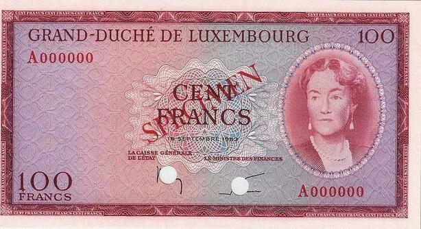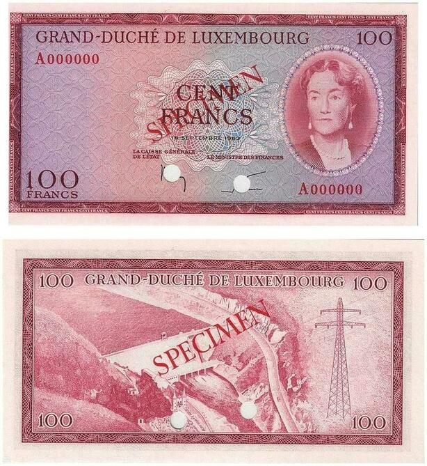 Q3443 Rare Luxembourg Specimen 100 Francs Grand Duchess Charlotte 1963 UNC