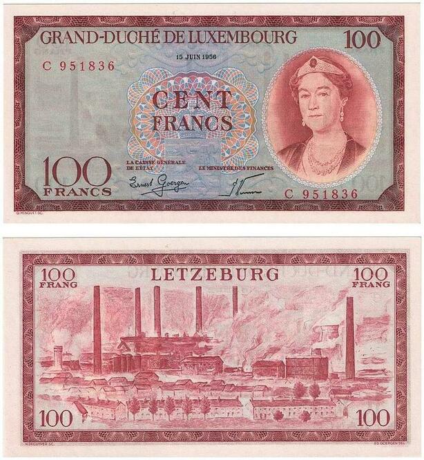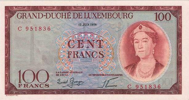 Q3446 Banknote Rare Luxembourg 100 Francs Grand Duchess Charlotte 1956 UNC