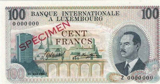 Q3454 Rare Luxembourg Specimen Essai 100 Francs Grand-Duke Jean 1968 UNC