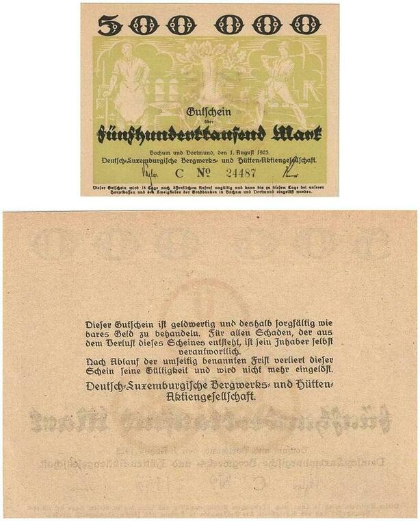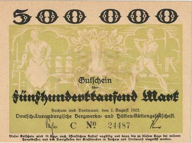 Q3470 German Luxembourg Bochum Dortmunt Mines Bergwerk 500 000 Mark 1925