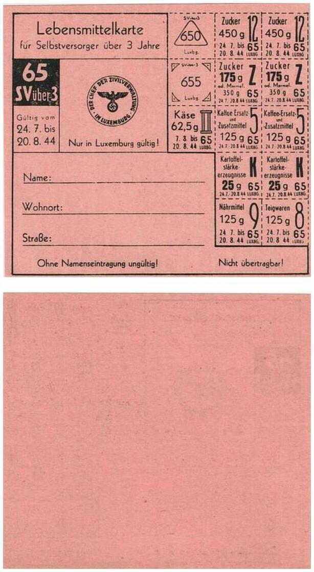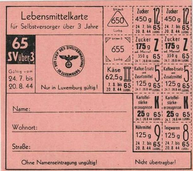 Q3475 Luxembourg Lebensmittelkarte Bon de Survie Alimentaire 1944 UNC