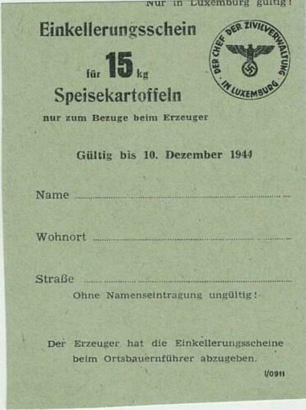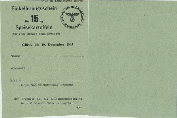 Q3478 Luxembourg Lebensmittelkarte Bon de Survie 15kg Potatoes 1944 UNC