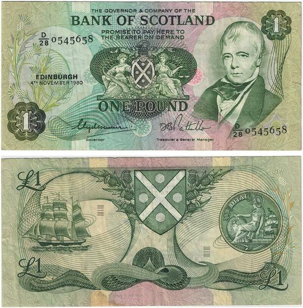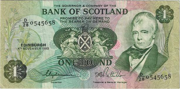 Q3522 Banknote Bank of Scotland Pound Sir Walter Scott Edinburgh 1980