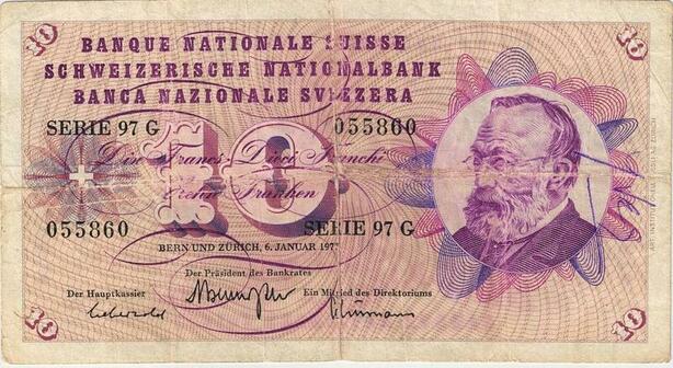 Q3546 Banknote Switzerland 10 Francs Suisse 10 Franchi 10 Franken 1977