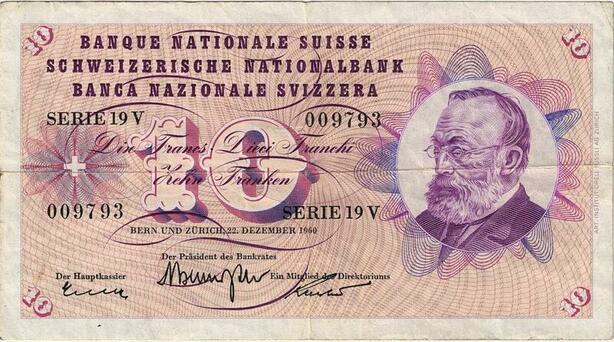 Q3547 Banknote Switzerland 10 Francs Suisse 10 Franchi 10 Franken 1960