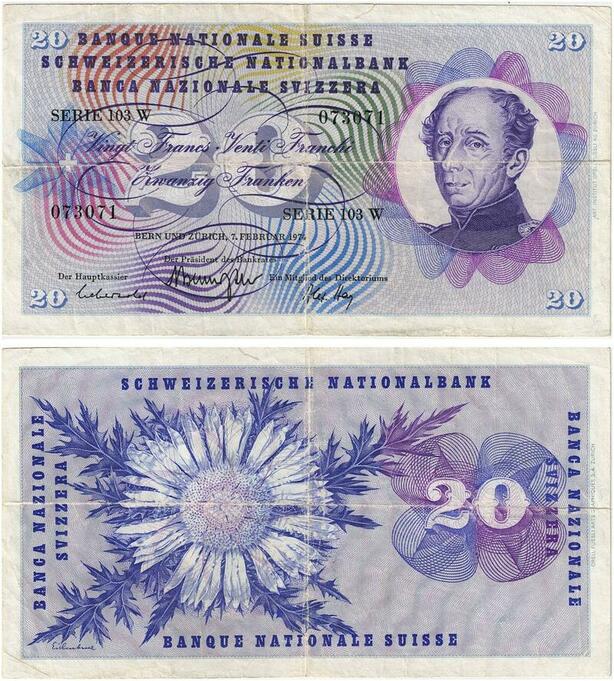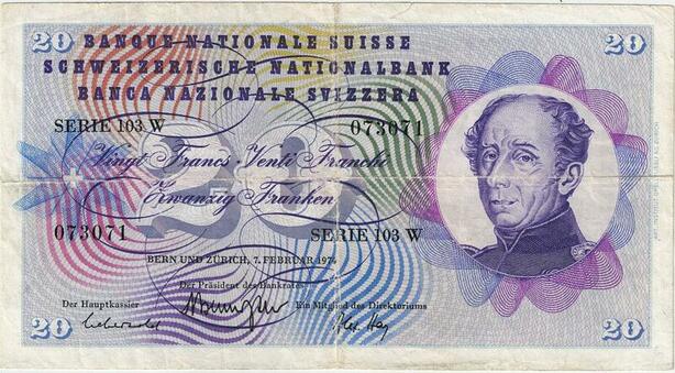 Q3549 Banknote Switzerland 20 Francs Suisse 20 Franchi 20 Franken 1974