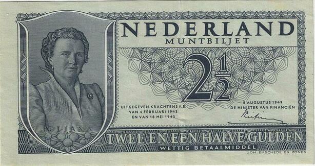 Q3558 Banknote Netherlands 2 1/2 Gulden Juliana 1949 AU - Make Offer