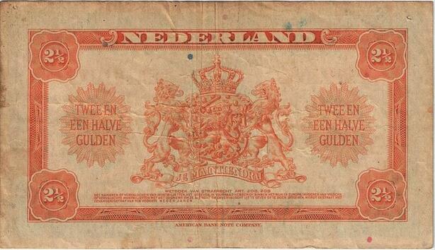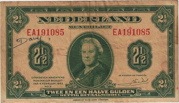 Q3559 Banknote Netherlands 2 1/2 Gulden Wilhelmina 1943 - Make Offer