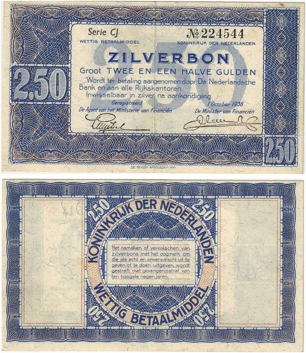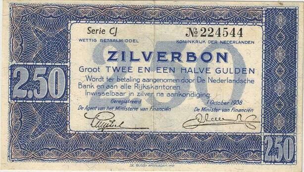Q3561 Banknote Netherlands Zilverbon 2,5 Gulden 1938 - Make Offer