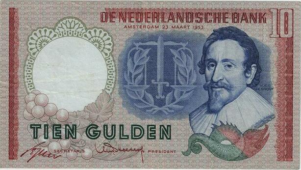 Q3566 Banknote Netherlands 10 Gulden Hugo de Groot 1953 - Make Offer