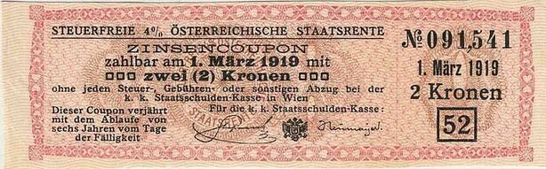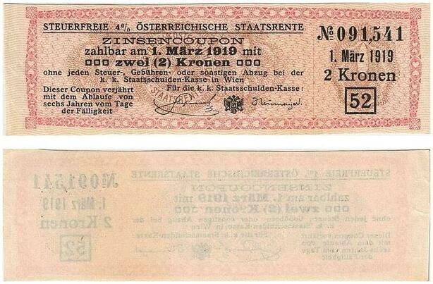 Q3584 Austria Österreich Zinsencoupen 2 Kronen Kupone 2 Korona 1919 - Offer