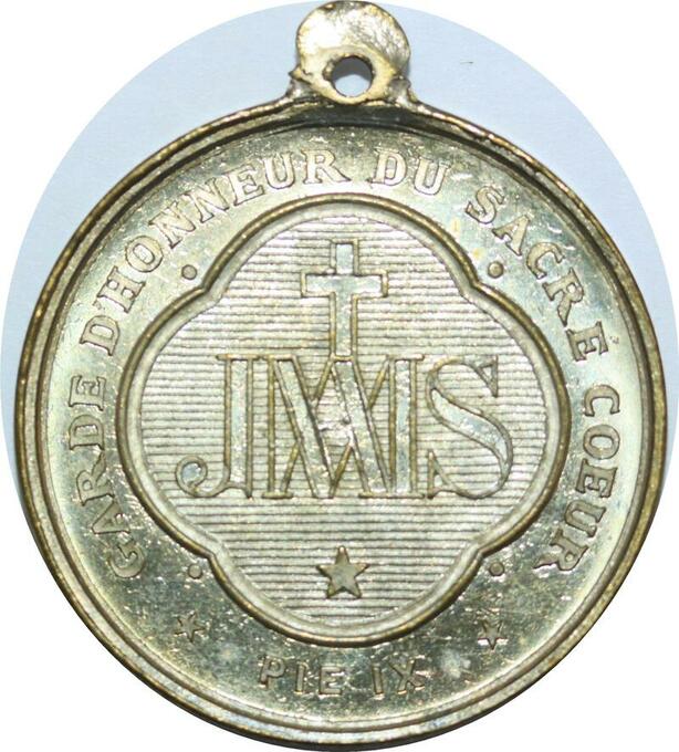 Q6001 Rare Médaille Vatican Pie IX Garde Honneur Sacrée Coeur Jesus SUP