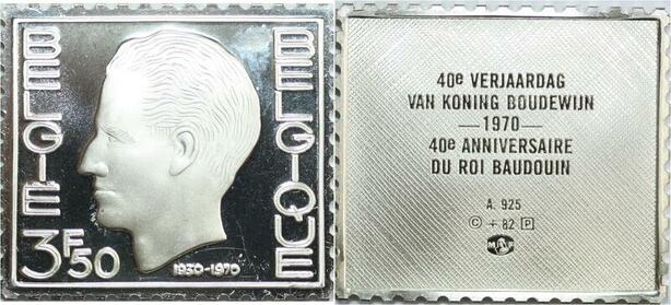 R0003 Belgium Timbre Monnaie 40 ans Roi Baudouin 1930 1970 Silver Proof