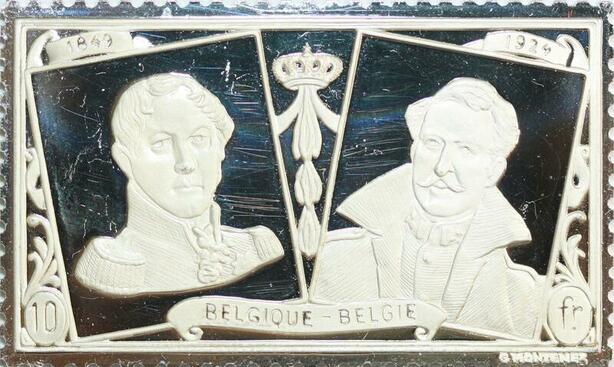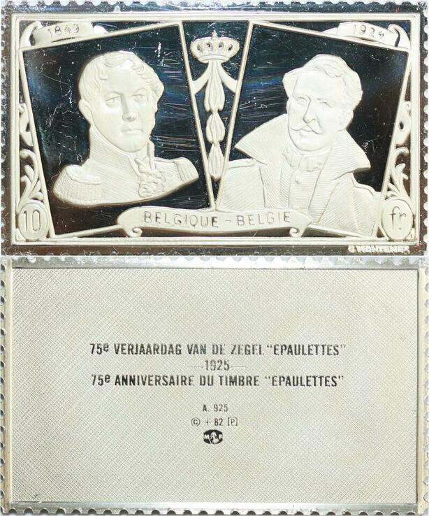 R0010 Belgium Timbre Monnaie 10 Francs 75 ans épaulettes 1925 Silver Proof