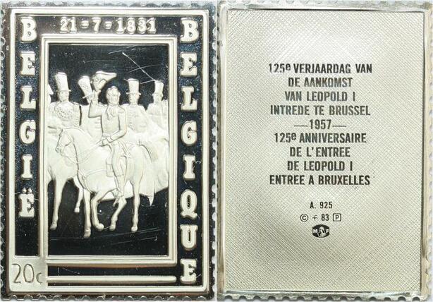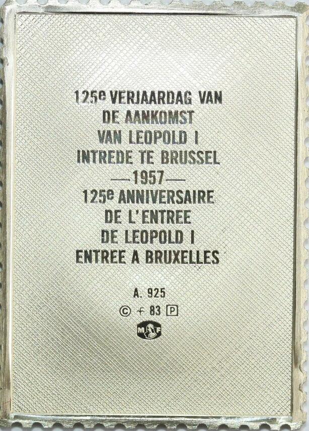 R0012 Belgium Timbre Monnaie Entrée Leopold I Bruxelles 1957 Silver Proof