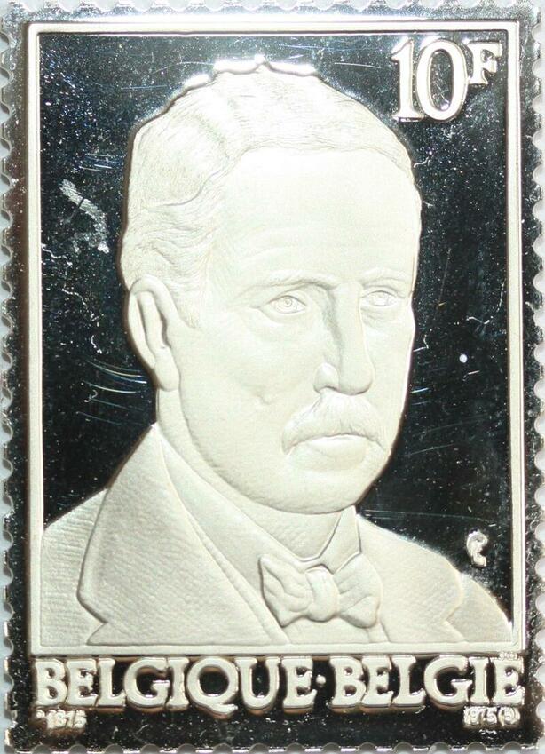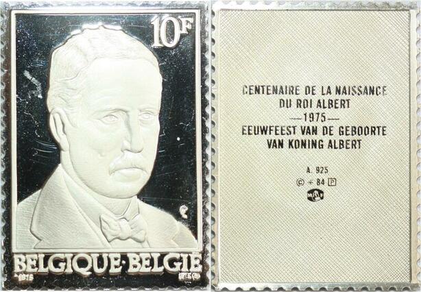 R0013 Belgium Timbre Monnaie Centenaire Roi Albert 1875 1975 Silver Proof