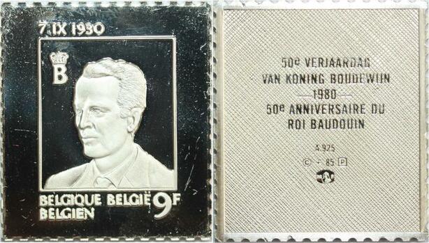 R0014 Belgium Timbre Monnaie 50 ans Roi Baudouin 1930 1980 Silver Proof
