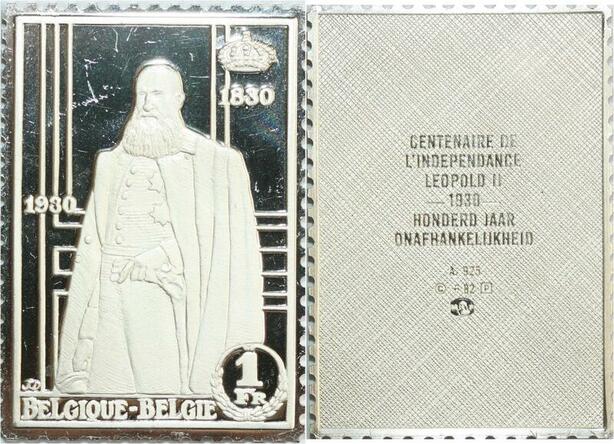 R0024 Belgium Timbre Monnaie 100 ans Indépendance Leopold II 1930 Silver