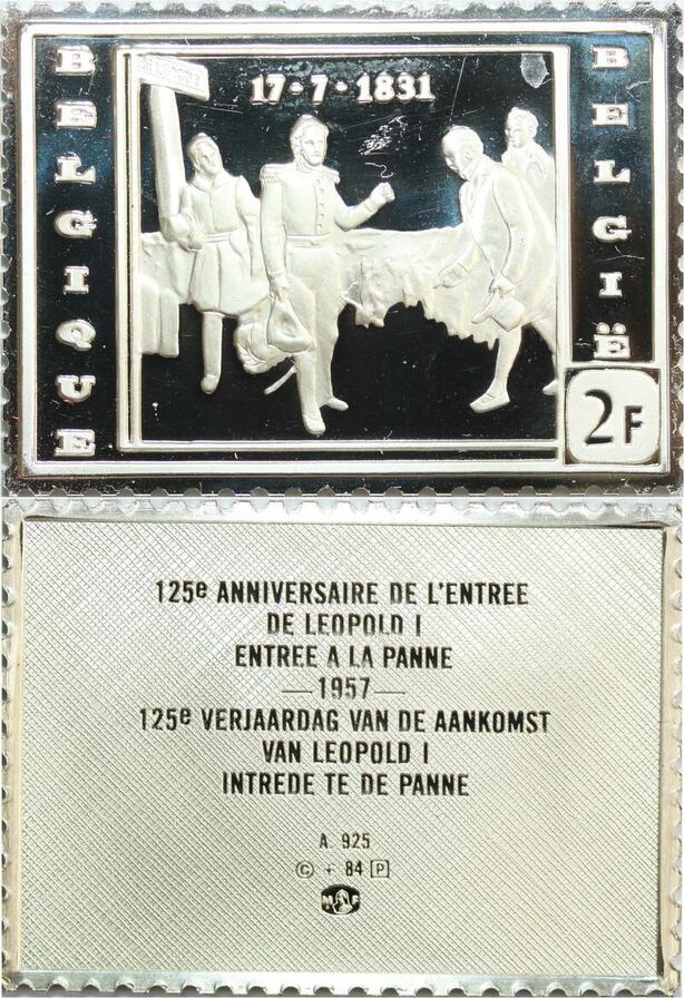 R0027 Belgium Timbre Monnaie 125 ans Leopold I Entrée Panne 1957 Silver