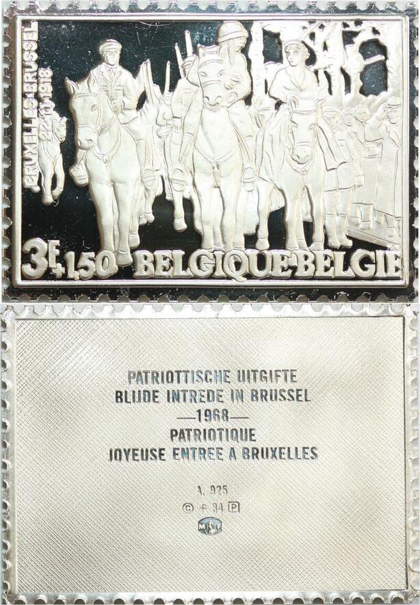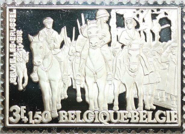 R0028 Belgium Timbre Monnaie 50 Francs Bruxelles Victoire 1918 Silver Proof