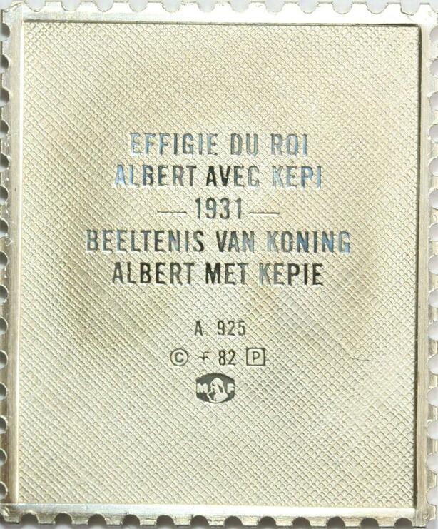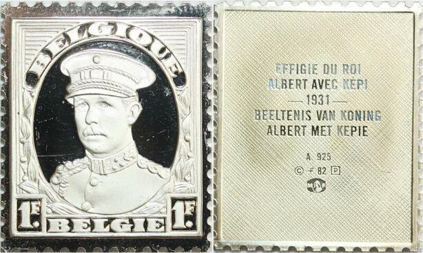 R0029 Belgium Timbre Monnaie 1 Franc Roi Albert Képi 1931 Silver Proof