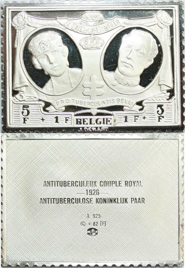 R0040 Belgium Timbre Monnaie Antituberculeux Léopold III Astrid 1926 Silver